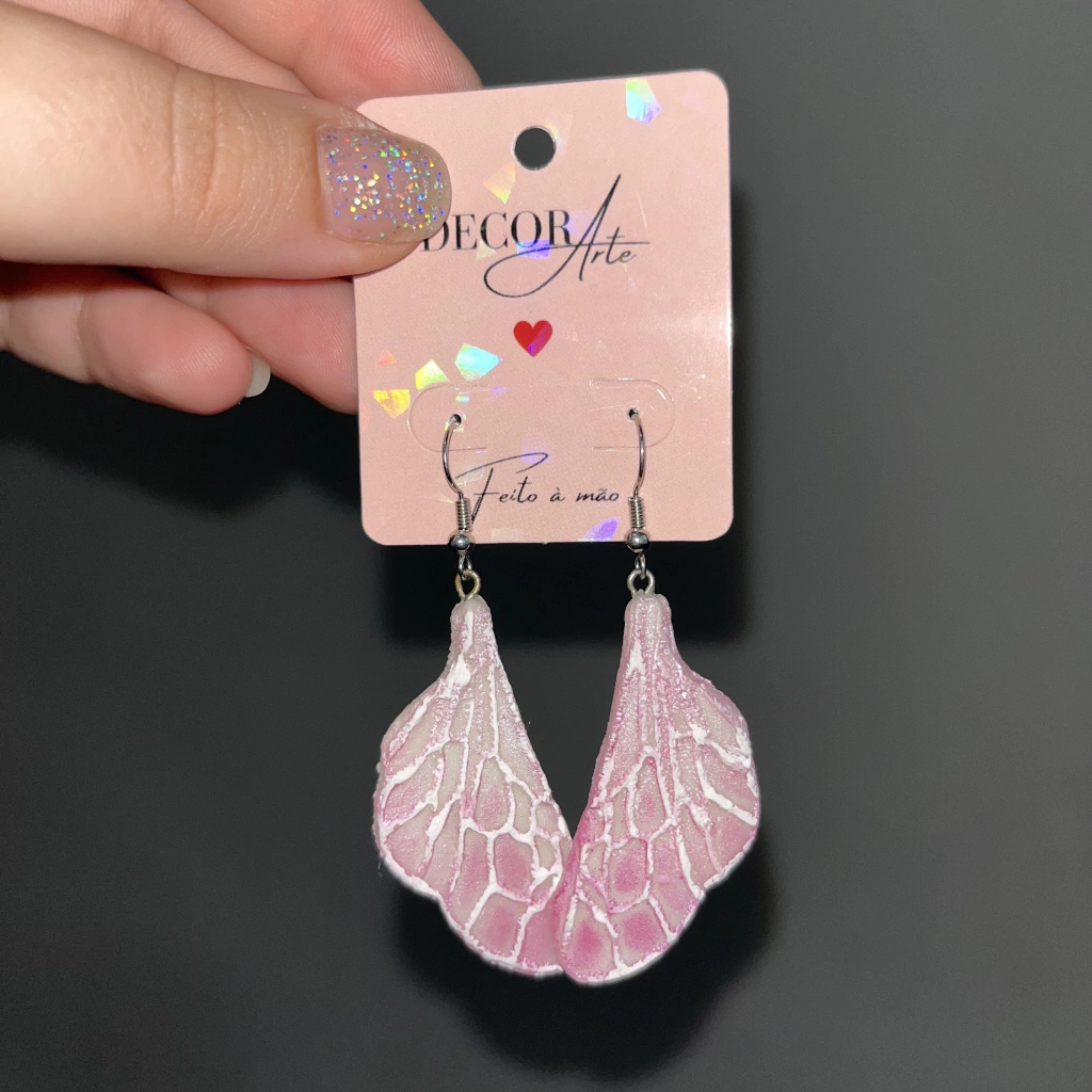 Brincos de asas de fada cintilantes, feitos à mão em porcelana fria.