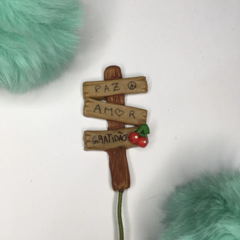 Enfeite de chimarrão de plaquinha, feito à mão em porcelana fria.